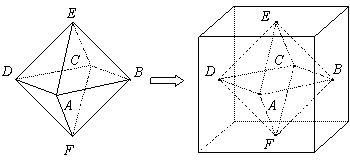 两个相同的正四棱锥底面重合组成一个八面体,可放于棱长为