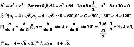 解法3:同解法1可得c=8. 又由余弦定理可得