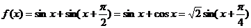 说明:本题是2000年全国高考试题,属中档偏容易题,主要考查三角函数的图像和性质。这类题一般有两种解法:一是化成关于sinx,cosx的齐次式,降幂后最终化成y=