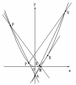 与抛物线C交于不同的两点E、F,直线AF、AE分别交抛物线C于P、Q两点。