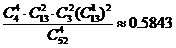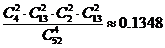 例4 1副扑克牌有红桃、黑桃、梅花、方块4种花色,每种13张,共52张,从1副洗好的牌中任取4张,求4张中至少有3张黑桃的概率.