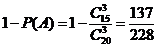 法二 记从20件产品中任取3件,3件全是正品为事件A,那么任取3件,至少有1件次品为
