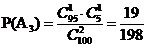 (1)00件产品中有95件合格品,取到2件合格品的结果数,就是从95个元素中任取2个组合数