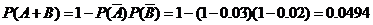 例2 1个产品要经过2道加工程序,第一道工序的次品率为3%,第二道工序次品率为2%,求产品的次品率.