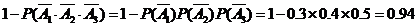 这里,A1,A2,A3独立,且P(A1)=0.7,P(A2)=0.6,P(A3)=0.5.