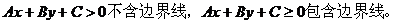 只需在此直线的某一侧取一特殊点(x0,y0)从Ax0+By0+C的正、负即可判断Ax+By+C>0表示直线哪一侧的区域。(若C≠0时,可取原点(0,0))