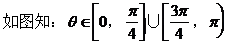 解析1:求出交点坐标,再由交点在第一象限求得斜率的范围,进而得到倾斜角的范围。