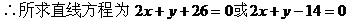 例3. 一条直线经过点P(2,3),并且分别满足下列条件,求直线方程:
