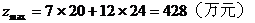 如图作出可行域,作出一组平行直线7x+12y=m(m为参数)中,经过可行域内的点且和原点距离最远的直线,此直线过4x+5y=200和3x+10y=300的交点A(20,24),即生产甲、乙两种产品分别为20t、24t时,利润总额最大,