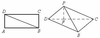 ,沿对角线BD将三角形ABD向上折起,使点A移动到点P,使点P在平面BCD上的射影在DC上(如下图F)。