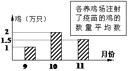 65、为了了解“预防禽流感疫苗”的使用情况,温州市卫生部门对本地区9月份至11月份使用疫苗的所有养鸡场进行了调查,根据下列图表提供的信息,可以得出这三个月本地区每月注射了疫苗的鸡的数量平均为 90 万只.