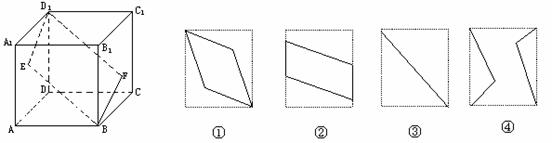 6、(石中)如图E、F分别为正方体的面ADD1A1、面BCC1B1的中心,则四边形BFD1E在该正方体的面上的射影可能是________________(要求:把可能的图的序号都填上).