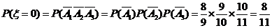 元的赔偿(假设每辆车最多只赔偿一次),设这三辆车在一年内发生此种事故的概率分别为