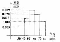 4.(0712山东青岛)200辆汽车经过某一雷达地区,时速频率分布直方图如图所示,则时速超过60km/h的汽车数量为 ( )