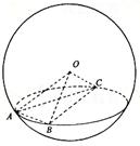 如图,A、B、C是表面积为48π的球面上三点,AB=2,BC=4,∠ABC=60º,O为球心,则直线OA与截面ABC所成的角