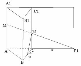 4.如图,在正三棱柱ABC-A1B1C1中,AB=3,AA1=4,M为AA1的中点,P是BC上一点,且由P沿棱柱侧面经过棱CC1到M点的最短路线长为