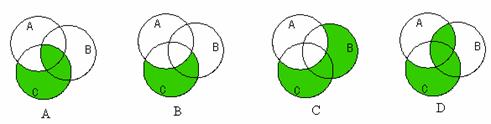 B},现有三个集合A、B、C分别用圆表示,则集合C-(A-B)可表示下列图中阴影部分的为 ( )