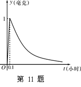 11.为了预防流感,某学校对教室用药熏消毒法进行消毒. 已知药物释放过程中,室内每立方米空气中的含药量y(毫克)与时间t(小时)成正比;药物释放完毕后,y与t的函数关系式为