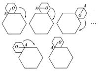 如图,小正六边形沿着大正六边形的边,按顺时针方向滚动.小正六边形的边长是大正六边形边长的一半,如果小正六边形沿着大正六边形的边滚动一周后返回出发时的位置,在这个过程中向量