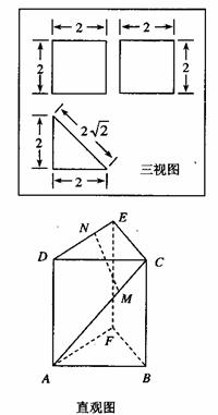 20.(本小题满分12分)多面体ABCDEF的直观图及三视图分别如图所示,已知点M在AC上,点N在DE上,且AM:MC=DN:NE=a