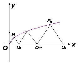 22. (本小题满分14分) 幂函数y = 的图象上的点 Pn(tn2,tn)(n = 1,2,……)与 x 轴正半轴上的点 Qn 及原点 O 构成一系列正△PnQn-1Qn(Q0与O重合),记 an = | Qn-1Qn |