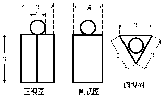 如右图为一个几何体的三视图,尺寸如图所示,则该几何体的表面积为 (不考虑接触点)