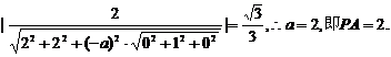 设PA=a,则A(0,0,0),B(2,0,0)C(2,2,0),D(0,2,0)P(0,0,a),