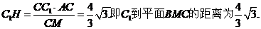在平面ACC1A中过C1做C1H⊥CM,又BC⊥C1H,所以C1H为C1到平面BMC的距离.