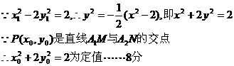 于M、N不同两点,A1、A2分别为双曲线的左顶点和右顶点,设直线A1M与A2N交于点P(x0,y0)