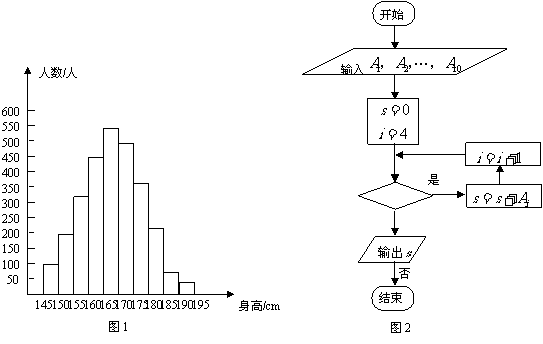 内的学生人数).图2是统计图1中身高在一定范围内学生人数的一个算法流程图.现要统计身高在160-180cm(含160cm,不含180cm)的学生人数,那么在流程图中的判断框内应填写的条件是( )