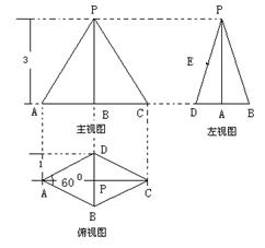 19、(本小题12分) 一个四棱锥的直观图和三视图如右图所示E为PD中点。