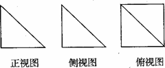 (2009莱阳模拟)一个几何体的三视图如图所示,其中正视图和侧视图是腰长为4的两个全等的等腰直角三角形.若该几何体的体积为V,并且可以用n这样的几何体拼成一个棱长为4的正方体,则V,n的值是(