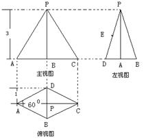 19、(本小题12分)一个四棱锥的直观图和三视图如右图所示E为PD中点。