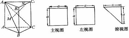 一个多面体的直观图(主观图、左视图、俯视图)如图所示,M、N分别为A1B1、B1C1
