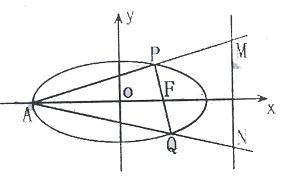 ,F为其右焦点,A为左顶点,过F作直线与椭圆交于异于A的P、Q两。
