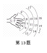 13.一个小朋友按如图所示的规则练习数数,1大拇指,2食指,3中指,4无名指,5小指,6无名指,