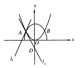 的交点分别为A,B,曲线C1与抛物线C2在点A处的切线分别为![]()