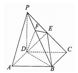 如图,在四棱锥P-ABCD中,底面ABCD是边长为2的正方形,PD⊥底面ABCD,PD=DC,点E是PC的中点,点F在PB上,EF⊥PB。