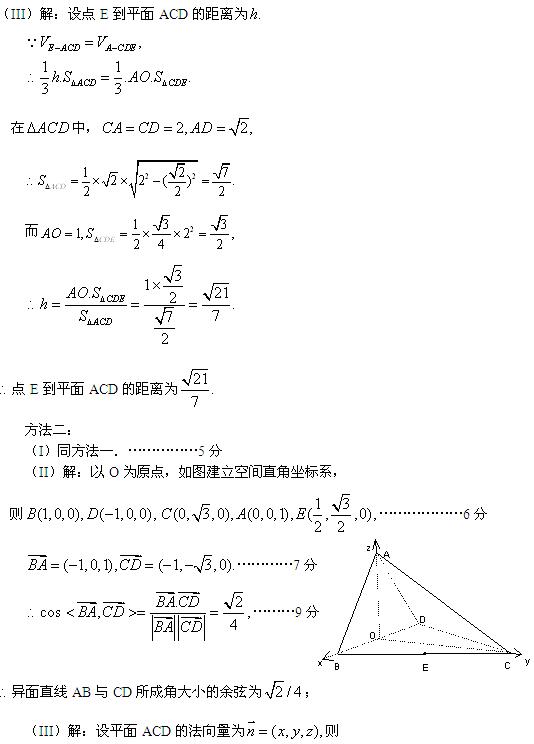 如图,四面体ABCD中,O、E分别是BD、BC的中点,