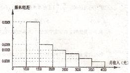 右图是某市有关部门根据该市干部的月收入情况,作抽样调查后画出的样本频率分布直方图,已知图中第一组的频数为4000,请根据该图提供的信息解答下列问题:(图中每组包括左端点,不包括右端点,如第一组表示收入在[1000,1500))