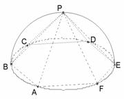 5.如图,半径为2的半球内有一内接正六棱锥P-ABCDEF,则此正六棱锥的体积为( )![]()