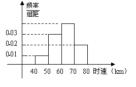 率分布直方图如右图所示,求时速在
