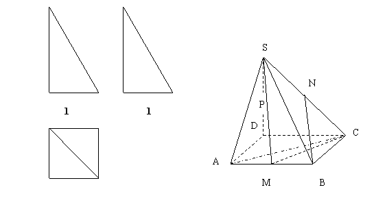 一个多面体的三视图和直观图如图所示,其中M 、N分别是AB、SC的中点,P是SD上的一动点.