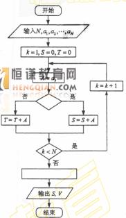 正数,支出记为负数。该店用右边的程序框图计算月总收入S和月净盈利V,那么在图中空白的判断框和处理框中,应分别填入下列四个选项中的