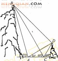 如图,A,B,C,D都在同一个与水平面垂直的平面内,B,D为两岛上的两座灯塔的塔顶。测量船于水面A处测得B点和D点的仰角分别为