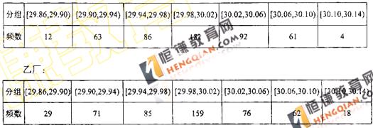 某企业有两个分厂生产某种零件,按规定内径尺寸(单位:mm)的值落在(29.94,30.06)的零件为优质品。从两个分厂生产的零件中个抽出500件,量其内径尺寸,的结果如下表:
