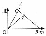如图,一科学考察船从港口O出发,沿北偏东α角的射线OZ方向航行,而在离港口O