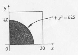 例5.(CB对讲机问题)(CB即CitizenBand市民波段的英文缩写)两个CB对讲机持有者,莉莉和霍伊都为卡尔货运公司工作,他们的对讲机的接收范围为25公里,在下午3:0O时莉莉正在基地正东距基地30公里以内的某处向基地行驶,而霍伊在下午3:00时正在基地正北距基地40公里以内的某地向基地行驶,试问在下午3:0O时他们能够通过对讲机交谈的概率有多大?