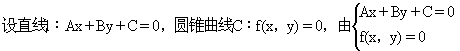 设直线l:y=kx+n,圆锥曲线:F(x,y)=0,它们的交点为P1 (x1,y1),P2 (x2,y2),