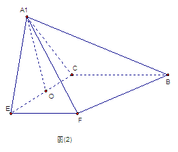 在平面BCEF上的射影O恰好为EC的中点,得到图(2)。